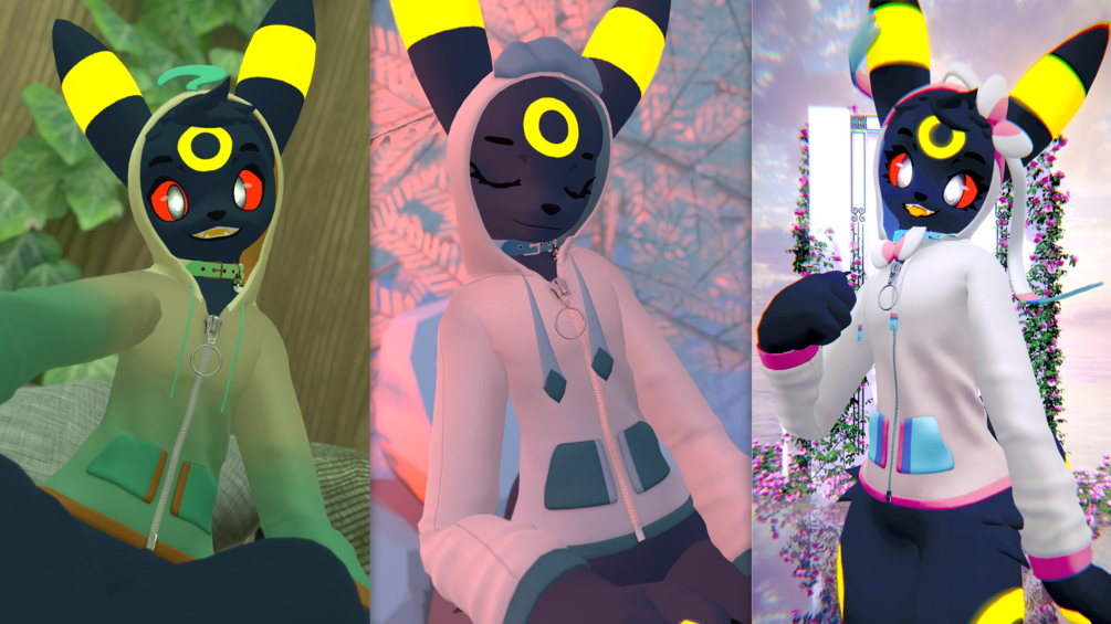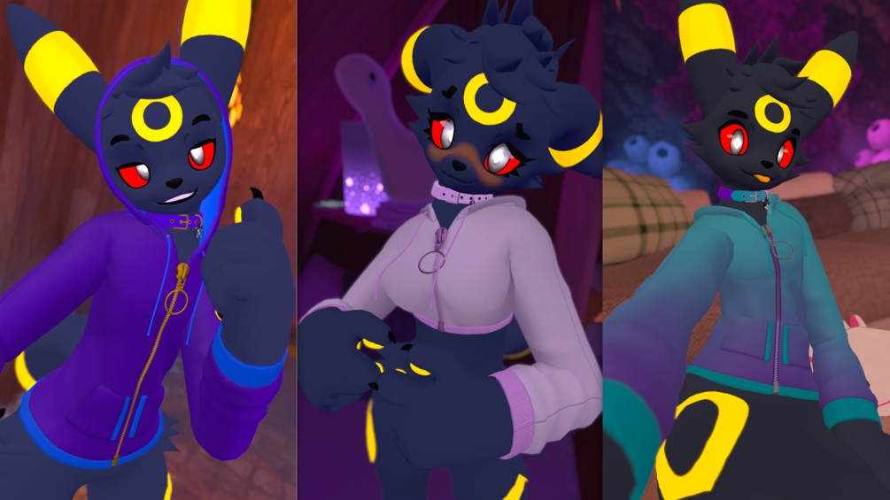 - 5 optional 'Deluxe' hoodies with different models (3 with extra physbones): Fire, Psychic, Grass, Ice, and Fairy.